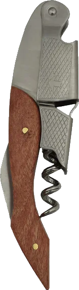 "Open wine like the professionals with the Roosewood Quick Step Corkscrew. Its non-stick spiral turns into cork faster than an ordinary spiral. Works with all cork types, including plastic and includes a foil cutter. The beautiful Rosewood finish makes this the perfect gift for any wine lover."