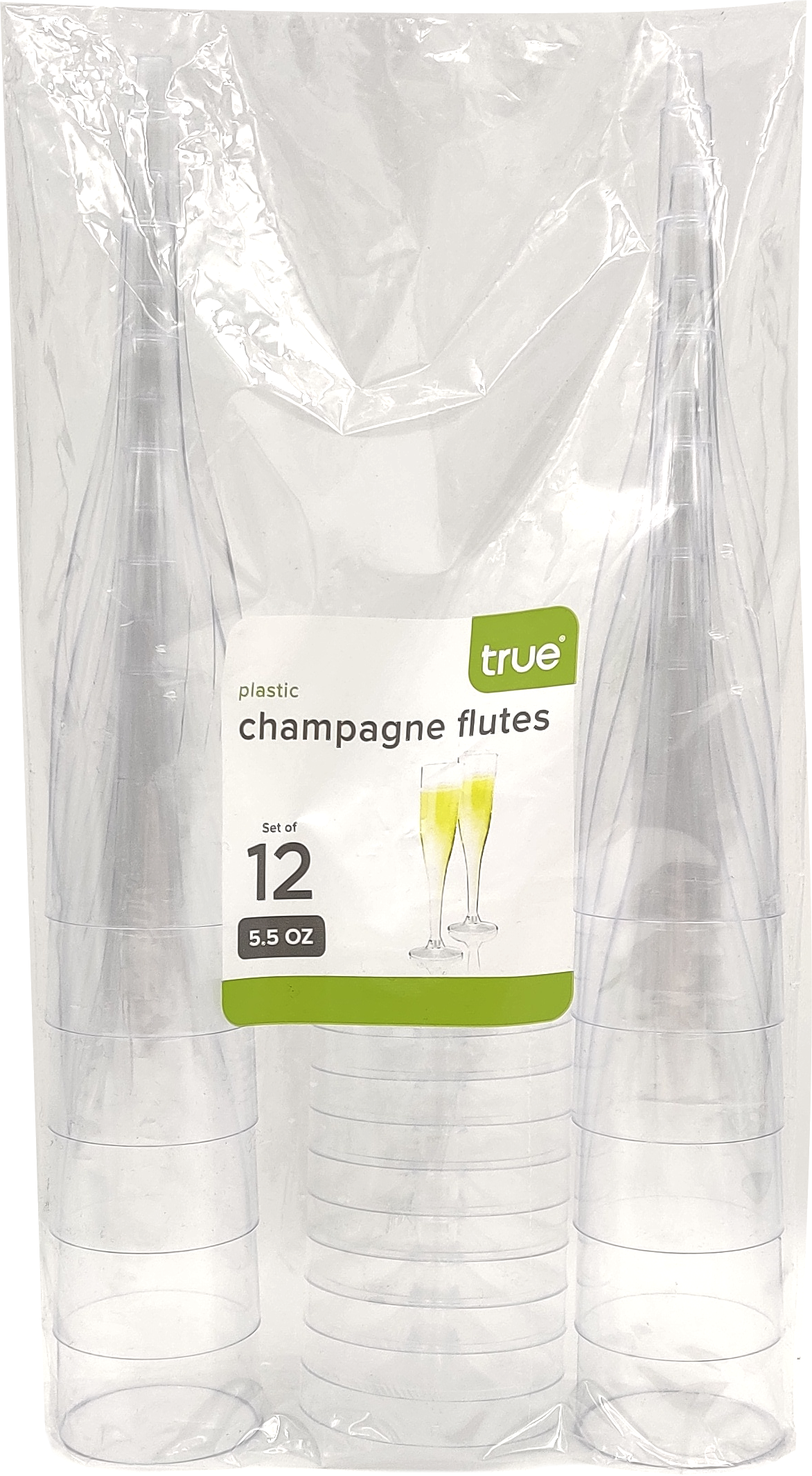 "When your festivities call for champagne and sparkling cocktails, you'll want elegant flutes. This disposable drinkware puts this iconic glass within reach, no matter how large your party. Set of 12 glasses, two piece design."