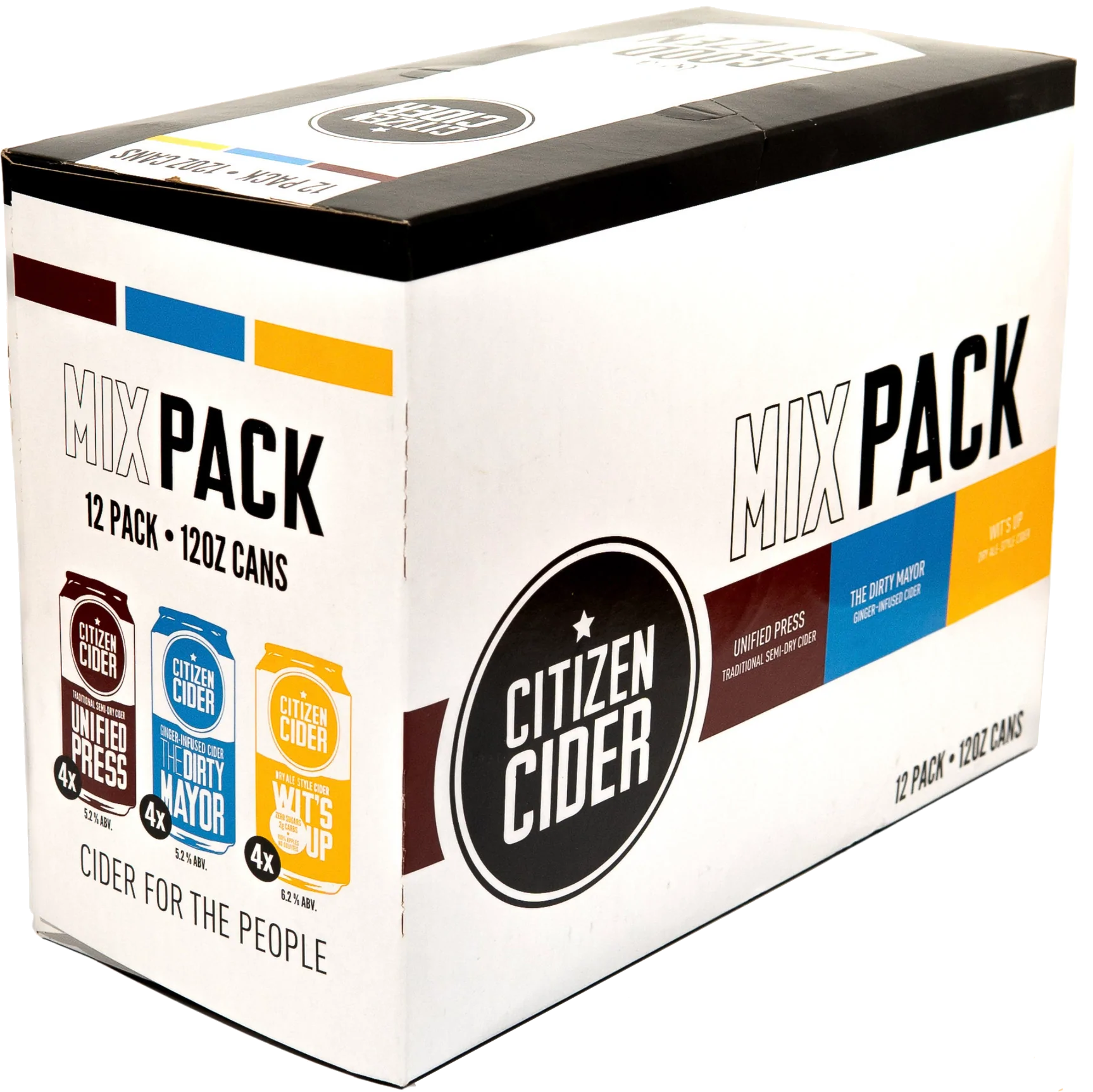"Citizen Cider has released a mixed pack containing 3 favorites: a traditional semi-dry cider called the Unified press, the dry-ale style cider Wit's Up, and the unique ginger-infused cider called The Dirty Mayor. Each pack contains 4 of each flavor. Perfect for any fall party and nights around the bonfire." Tasting Notes