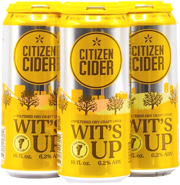 "Wit's Up starts like an ale and finishes like the dry session cider that it is. Inspired both by classic cider making traditions and their vision for the future style of American cider. No added sugar, never from concentrate and naturally gluten free. Pair with bratwurst, brioche, roasted chicken, and root vegetables." Tasting Notes