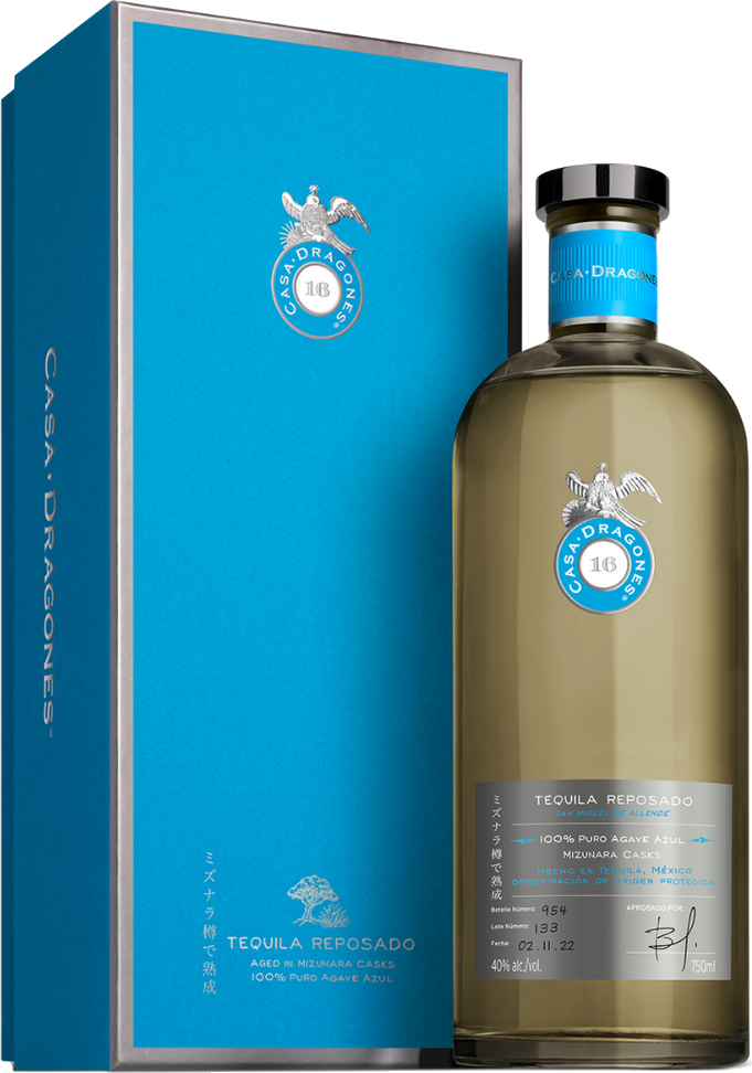 "Casa Dragones Reposado Mizunara is the first tequila rested exclusively in new Mizunara casks, a rare oak native to Japan and traditionally used for aging Japanese whiskies. This delicately rested tequila delivers subtle notes of orange blossom, apricot and coffee bean." Tasting Notes