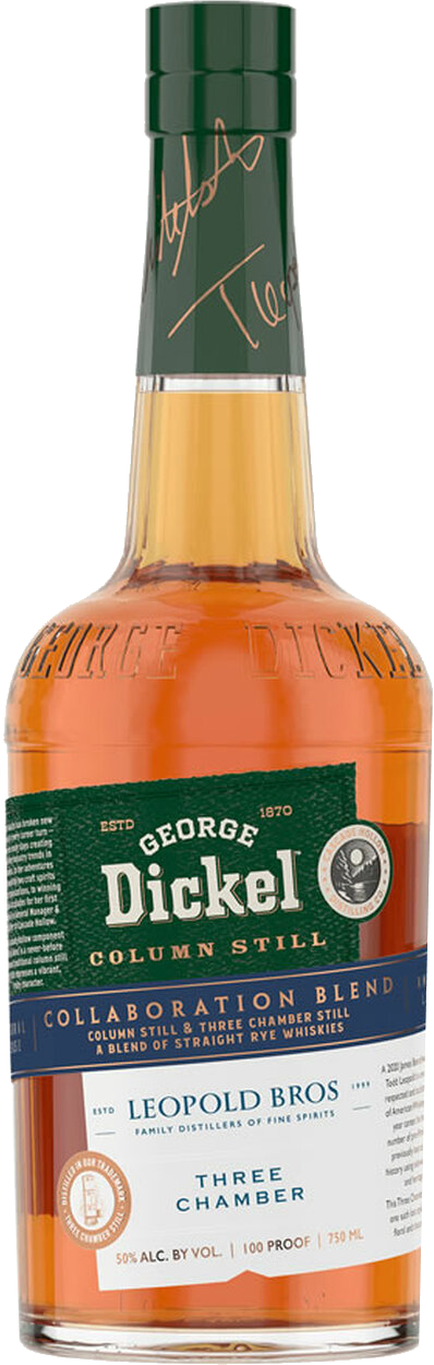 "This release blends George Dickel's column still rye produced at Cascade Hallow Distillery with Leopold Bros' Three Chamber Rye to recreate a historic style. This union between column distilled rye and Three Chamber distilled rye turns back the hands of time, returning to an era that saw heavy-bodied rye whisky served at bars and saloons throughout America. The Cascade Hollow component of this blend is a never-before released traditional column still rye." Tastings Notes