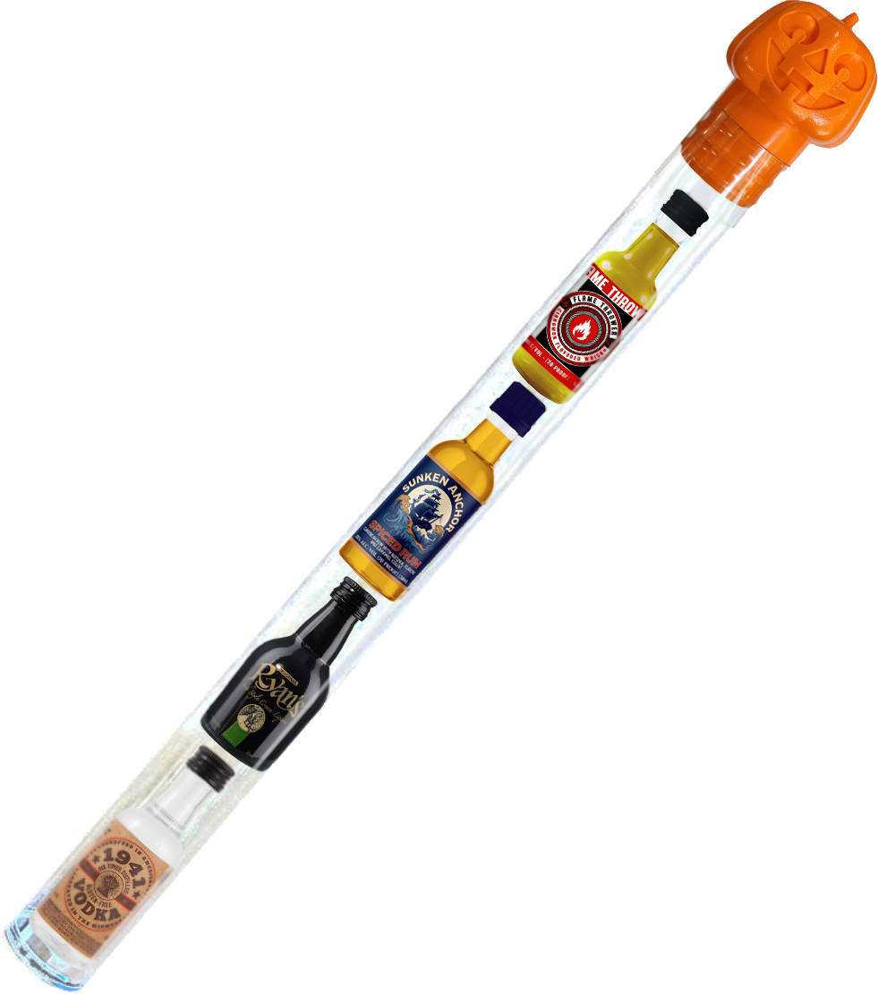 "Four festive 50ml spirits in a decorative candy cane."