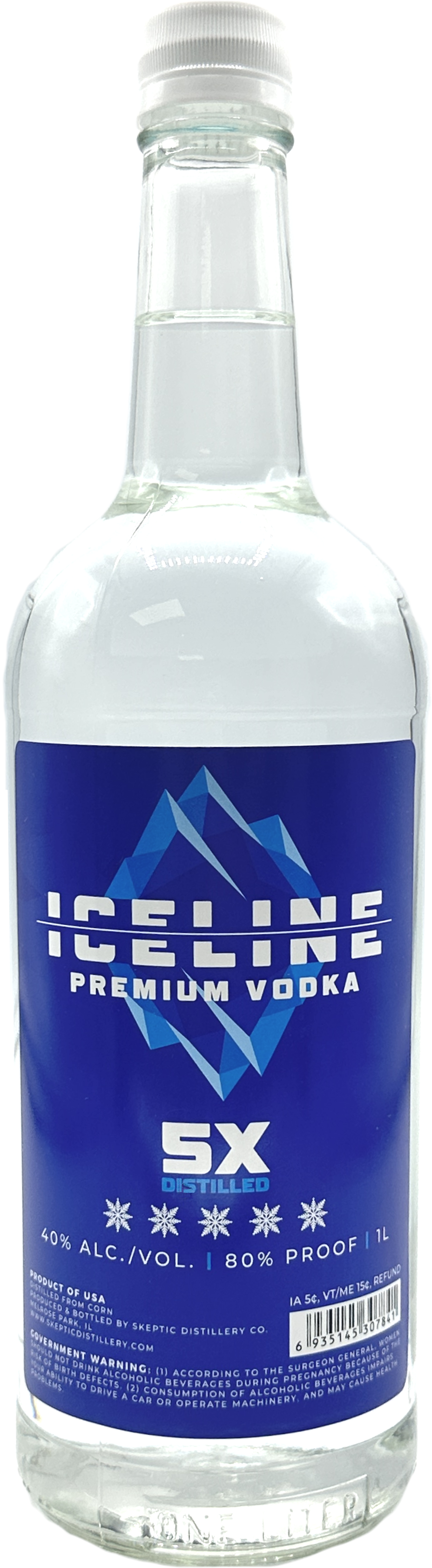 "A 5X distilled premium spirit made from corn that embodies the essence of clarity and refinement, crafted with meticulous precision. Iceline Vodka undergoes a quintuple distillation process to achieve unparalleled smoothness and purity. Each sip reveals a crystal-clear profile, free from impurities and imbued with a delicate, refined taste that lingers elegantly on the palate. Gluten Free." Tasting Notes