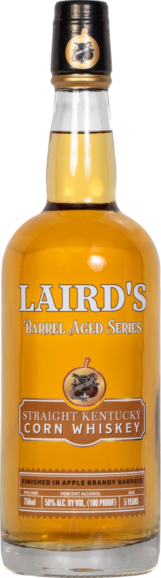 "Our five-year aged Kentucky Corn Whiskey is perfectly suited to benefit from a final rest in our Apple Brandy barrels. Corn whiskey, the core whiskey in all Bourbon, harmoniously absorbs the subtle vanilla, black pepper, apple and citrus flavors. After additional aging, the whiskey transforms into a more complex spirit with layers of aromas and flavors. Laird's Straight Corn Whiskey is truly unique. There is no other whiskey like it. Bottled at 100 proof." Producer Notes