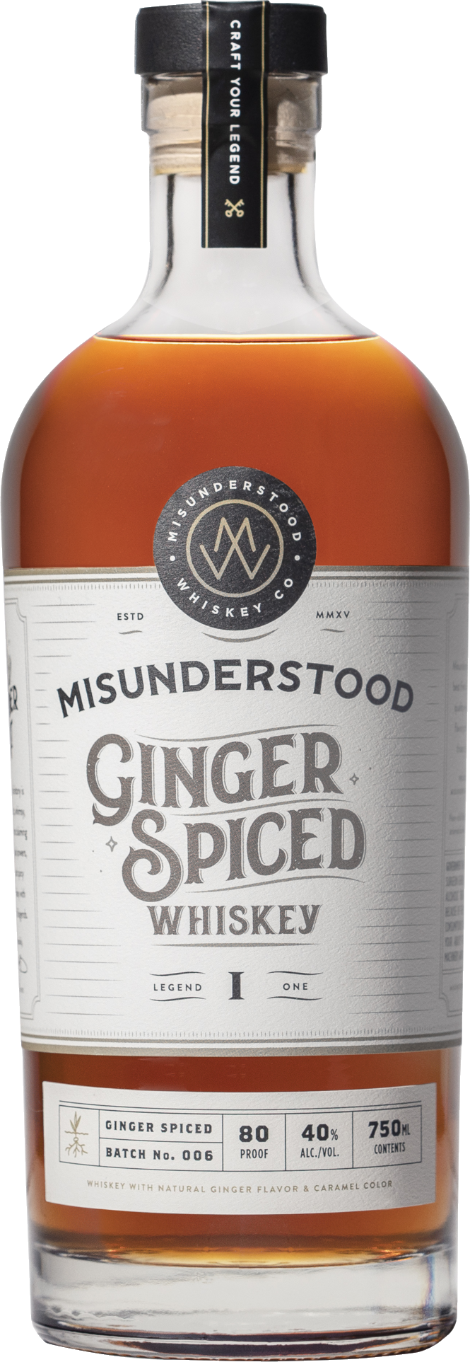 "A blend of mostly bourbon with a slight touch of American whiskey, aged in American oak barrels, and proudly blended and bottled at 80 proof in Kentucky. The ginger balances perfectly with the subtle sweetness of the high midwestern corn mash bill, making Misunderstood approachable for rookies, yet complex enough for connoisseurs. With a refreshingly smooth ginger finish, Misunderstood can be enjoyed neat, on the rocks, or in your favorite cocktail." Tasting Notes