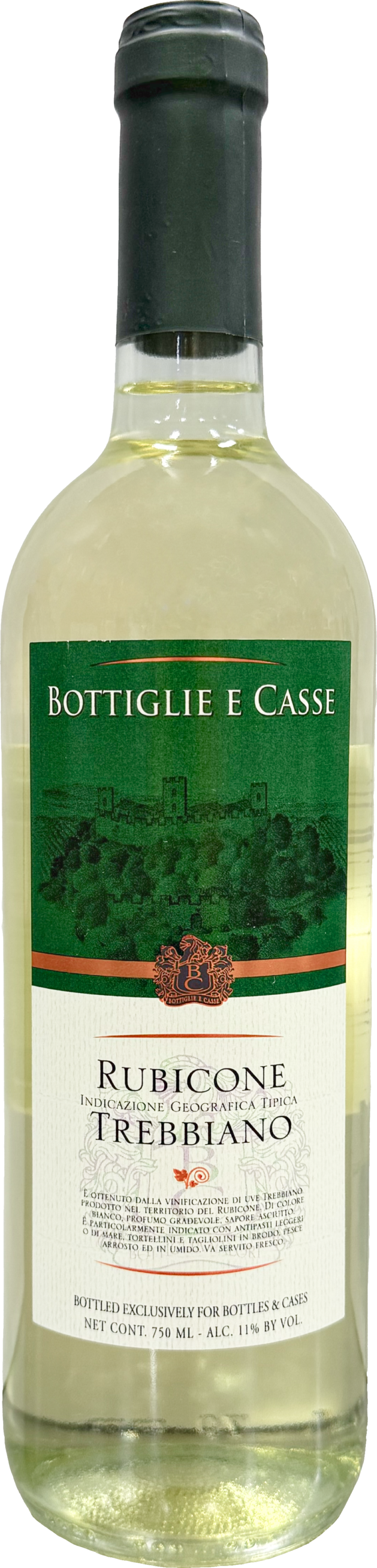 "Made from Trebbiano grapes from the Rubicone region of Italy. A dry, white wine with a pleasant aroma and flavors. Particularly good with light appetizers or seafood, noodles and tortellini in broth, or roast and stewed fish. It should be served cool." Winemaker's Notes