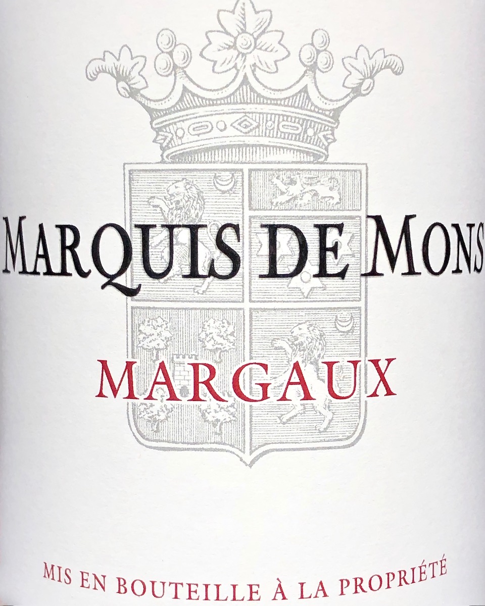 "A blend of 64% Merlot and 36% Cabernet Sauvignon. Fresh, juicy cassis, earth and floral notes define the personality of this medium-bodied wine. Soft with black cherries and an espresso finish. Balanced, with supple tannins and good aromatic expression.Marquis de Mons 2016 is marked by a fruity palate that makes it enjoyable young but also within 5-7 years." Winemaker's Notes